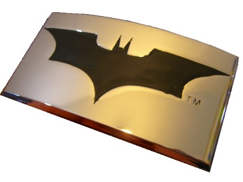BATMAN BELT BUCKLE (chrome rectanglel) + display stand Available at Amazon.co.uk