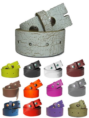 Interchangable leather belt with press studs. 1.5 inches wide For use with detatchable buckles (sold separately)