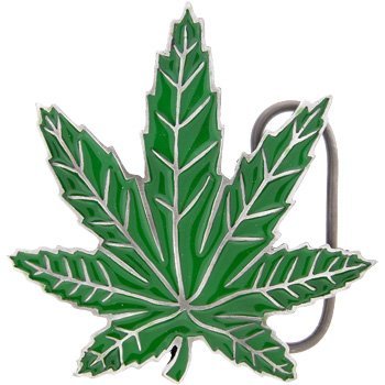 Ganga Buckle. A smoker's paradise the classic Pot Leaf Buckle. Exceptional 3 Dimensional Detailed Buckle Design. Finely sculpted and enameled finish belt buckle.. Specifications: 2.5 Inches w x 2.75 Inches h. Green GANGA LEAF Belt Buckle